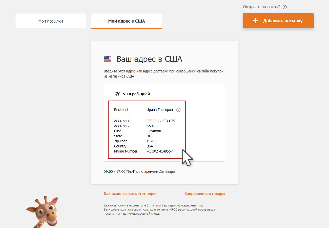 1. После заполнения полей Вам будет автоматически присвоен адрес доставки в США и в Англии
