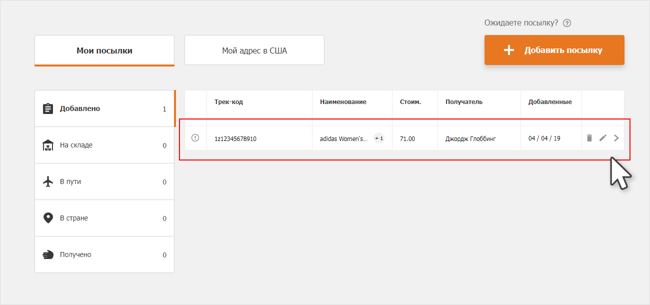 3. Ваши добавленные посылки вы можете посмотреть и отредактировать на странице «Мои посылки» в разделе «Добавленные».