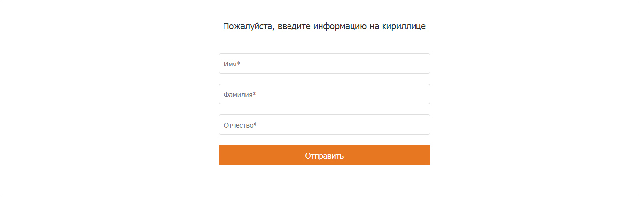 Обратите внимание, что все данные необходимо вводить на кириллице и пароль должен содержать не менее 8 символов.